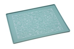Motivos cuidadosamente seleccionados del famoso gato doméstico Simon's Cat en poses divertidas y con las típicas muecas | Hecho de silicona | El borde completo evita la fuga de líquido | Protege el suelo de las manchas | Disponible en versiones verde y gris.
