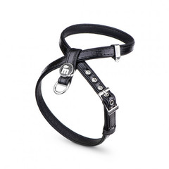 Arnés X negro para perro de la colección Saint Tropez en piel sintètica con acabados en bronce blanco.