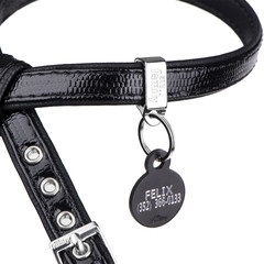 Arnés negro para gato y perro pequeño de la colección Saint Tropez en piel sintètica con acabados en bronce blanco. Disponible en varios tamaños: 3XS (30-36 cm)10 kg / 2XS (34-40 cm)10 kg / XS (38-44 cm) 15 kg / S (42-48 cm) 15 kg
