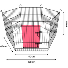 Material: metal con pasadores de sujeción para mayor estabilidad | Grosor horizontal, vertical y distancia entre los alambres: 3,5 / 2,5 / 24 mm | Adecuado para roedores pequeños | 1 puerta en delantera con un cierre deslizante | Fácil de montar por ti mismo | Se puede ensamblar en diferentes formas | Plegable y fácil de almacenar