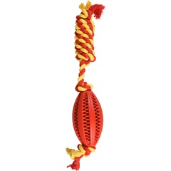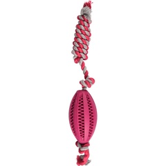 PELOTA DE RUGBY DENTAL CON CUERDA FLAMINGO (11cm) - COLORES SURTIDOS