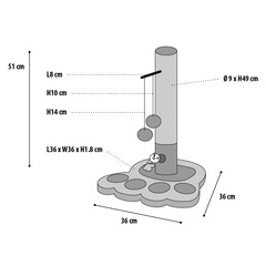 Material: felpa suave (200 g/m²) | Poste rascador con cuerda para rascador de sisal (4 mm) | Grosor placa base: 1,8 cm y diámetro poste rascadore: 8,5 cm | Con hierba gatera | Con juguetes para que disfruten jugando