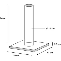 Material: felpa suave (450 g/m²) | Poste rascador con cuerda para rascador de algodón (8 mm) | Grosor placa base: 3,5 cm y diámetro poste rascadore: 15 cm | Medidas: L:5cm x An:5cm x Al:7,4cm