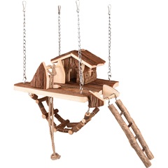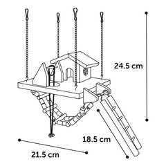 PUENTE COLGANTE Y CASITA DE MADERA PARA ROEDOR FLAMINGO (21,5x21,5x24,5cm) - MILLY