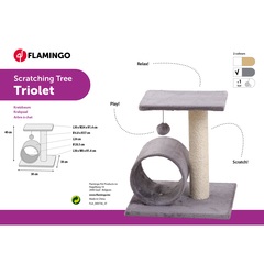 El rascador Triolet es perfecto para gatitos y gatos pequeños. Con una pelota juguetona y un divertido túnel para escalar, es una fiesta para tu gato. El poste de sisal mantiene las uñas saludables y el suave peluche proporciona comodidad adicional.