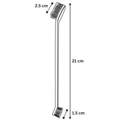 ¡Mantén los dientes de tu perro limpios con este práctico cepillo de dientes! Con una longitud de 21 cm y un lado grueso/fino, es fácil y rápido de usar. Perfecto para un aliento fresco y dientes saludables.