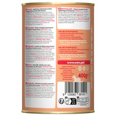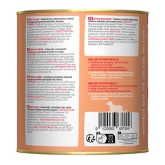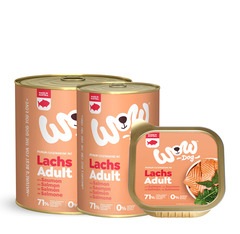 Adulto Salmón con diente de león | Composición: 71 % pescado & carne (21,5 % carne de pollo, 15% pescado (de los cuales 10 % de trucha, 5 % de salmón), 15 % pulmón de vacuno, 7,5 % riñón de vacuno, 6 % hígado de vacuno, 6 % corazones de carne), tomates, minerales, aceite de lino, cáscara de huevo molida, algas marinas, 0,1 % hojas de ortiga, 0,1 % hojas de diente de león. | Sin gluten, azúcares añadidos, soja, harina de huesos, despojos, colorantes, aromatizantes, conservantes, potenciadores del sabor. | Elaborado sin experimentación animal ni manipulación genética.