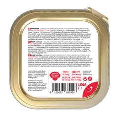 Menús de alimento completo de calidad superior para cachorros, perros adultos y perros mayores, con un 71% de carne, así como verdura, muchas vitaminas y minerales. | Disponible en tres formatos: 150g - 400g - 800g