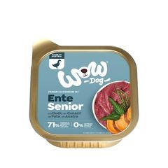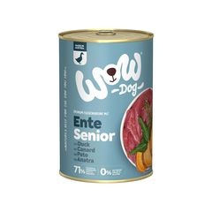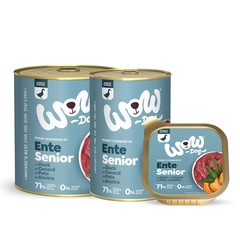 Senior pato con algas y batatas | Composición: 71 % carne y vísceras (el 20 % de pato (carne de pato 12 %, cuellos de pato 8 %), pulmón de vacuno 16,5 %, carne de pollo 15 %, riñón de vacuno 7,5 %, corazón de vacuno 6 %, hígado de vacuno 6 %), batatas 2,5 %, minerales, aceite de lino, cáscara de huevo molida, algas marinas 0,1 %, hojas de ortiga 0,05 %, hojas de diente de león. | Sin gluten, azúcares añadidos, soja, harina de huesos, despojos, colorantes, aromatizantes, conservantes, potenciadores del sabor. | Elaborado sin experimentación animal ni manipulación genética.