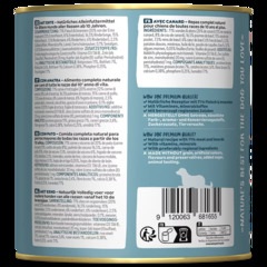 Menús de alimento completo de calidad superior para cachorros, perros adultos y perros mayores, con un 71% de carne, así como verdura, muchas vitaminas y minerales. | Disponible en tres formatos: 150g - 400g - 800g