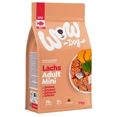 Alimento seco de primera calidad: rico en salmón. |Menú completo de alimentos para perros adultos de todos los tamaños y razas.|Con espinacas, vitaminas y Omega 3 y 6.|Hecho en Austria, SIN conservantes ni potenciadores del sabor artificiales.|Tamaño de la croqueta: Mini (8 mm), también apto para perros pequeños.|Relación calcio-fósforo: 1,4 : 1