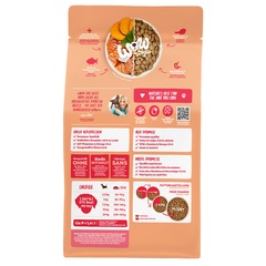 composición Pescado seco 32% (17% salmón, 15% trucha), patata, boniato 14%, guisantes, grasa de ave, pulpa de remolacha (desazucarada), aceite de salmón 2%, espinacas 0,2%, zanahorias, linaza, FOS 0,1%, MOS 0,1%, Yucca schidigera. Hecho sin: Cereales*, soja, ingeniería genética, colorantes y aromas artificiales, azúcar añadido, pruebas en animales.
