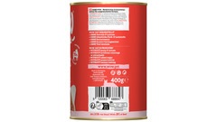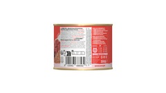Composición: 70 % carne de vacuno (compuesta de corazón de vacuno, hígado de vacuno, pulmón de vacuno, ubre de vacuno), 29 % caldo, 1 % minerales